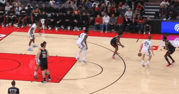 申京背身单打理查德吸引斯潘塞从底线前来夹击,阿门篮下接申京出球观察防守后立即“看贾传伊”——跳起后看着弱侧45°的贾巴里传给底角的伊森。